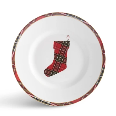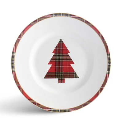 - •Festive Dinnerware Set: This service for 4 features classic plaid in deep reds and warm greens for a rugged to preppy look and gives an extra-festive look and feel; Made of fine porcelain with hand-applied decal