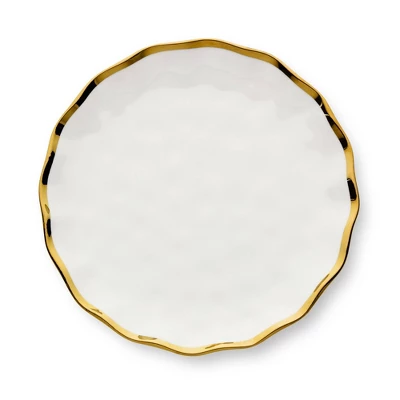 Elevate your dining experience with the Regency Gold Set of 4 Salad Plates, where timeless elegance meets everyday practicality. Measuring 9 inches in diameter, these plates are the perfect size for serving fresh salads, delectable appetizers, or sweet desserts. Crafted from premium porcelain, each plate features a glossy finish that enhances its durability and style. Adorned with a luxurious golden trim, the Regency Gold Salad Plates bring an air of sophistication to your table. Their versatile design makes them ideal for a variety of occasions, from casual family dinners to formal gatherings. Pair them with other pieces from the Regency Gold collection to create a cohesive and stunning table setting. The durable porcelain construction ensures these plates can withstand daily use while maintaining their refined appearance. Dishwasher-safe for effortless cleanup, these plates are designed with modern convenience in mind. However, their metallic accents make them unsuitable for microwave use, preserving their elegant details. Whether enhancing your existing dinnerware collection or gifting them for special occasions like weddings, anniversaries, or housewarmings, the Regency Gold Salad Plates add charm, functionality, and sophistication to any meal.