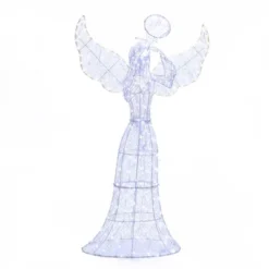 LuxenHome 5Ft Angel Playing Trumpet Outdoor Holiday Decoration With Lights White