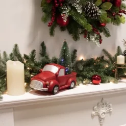 Northlight LED Lighted Pine Tree In Vintage Truck Christmas Decoration – 10″ – Red