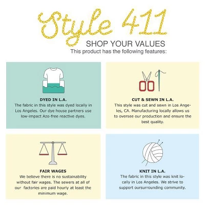 - CUT & SEWN IN L.A. – This style was cut and sewn in Los Angeles, CA. Manufacturing locally allows us to oversee our production and ensure the best quality.