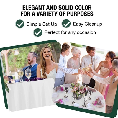 - Adds a sophisticated touch to your events as a white table cloth option for formal or casual occasions.