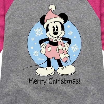 Disney – Mickey Merry Christmas – Toddler & Youth Girls Raglan Graphic T-Shirt – Add a touch of magic to your wardrobe with this graphic apparel featuring iconic Disney designs. Showcasing beloved characters and classic imagery, each piece combines nostalgic charm with modern style—perfect for Disney fans of all ages. Whether you’re headed to the parks or just adding whimsy to your everyday look, these graphics bring the magic to life.